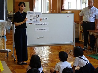 熱中症に備えて、養護教諭が予防と対応について話しました。