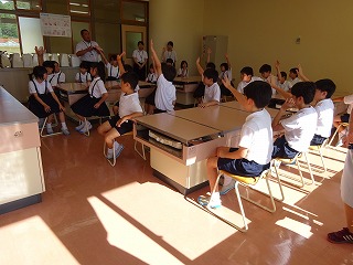 津幡小学校の栄養教諭、板谷さんより、学校給食の意義や家庭へのお願い等のお話がありました。