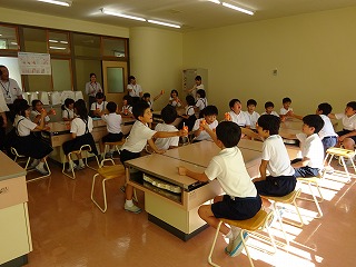 笠野小学校とは春の遠足、夏のプールでの活動、宿泊体験学習と年間3回の交流活動を実施し、宿泊体験学習は、二泊三日の能登少年自然の家、一泊二日の白山ろく少年自然の家を隔年で行っています。