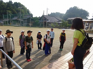 出発式 めあては 「五感を使って大自然を感じる、体験を通して生きて働く力を身に付ける」 です。