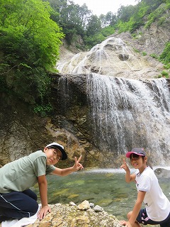 2日目のメインの活動、目附谷川(めっこだにがわ)でのイワナつかみです。