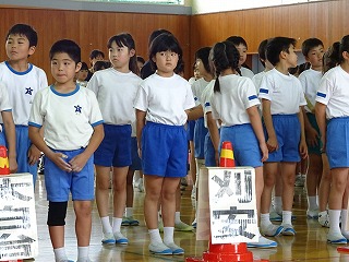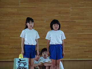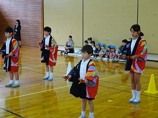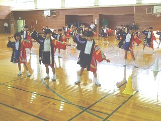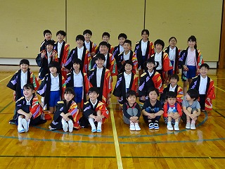 そして6月1日の児童集会の中で、1年生に法被が与えられ、刈安ソーランの正式なメンバーとして認められました。