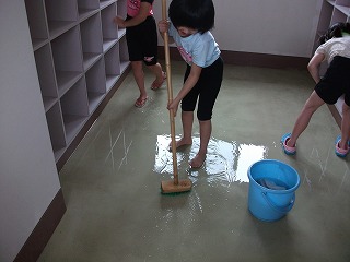 1年生と2年女子は、更衣室を気持ちよく使えるように掃除しました。