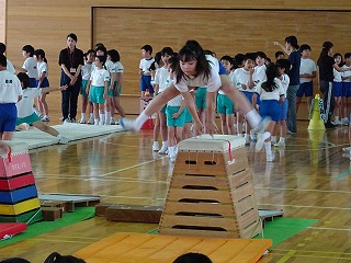 6月6日、津幡町小学校器械運動交歓会が中条小学校体育館で開催され、刈安小学校の2名の4年生も参加しました。津幡町の4年生378名が一堂に会して行われる会でしたが、2名の児童は堂々と練習の成果を発揮することができました。