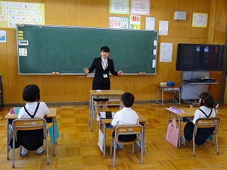 西川さんは本校の卒業生で、主に1年生の学級で授業を見たり行ったりして教職の勉強をします。