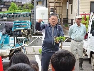苗の植え方、足の抜き方などを営農組合の方に教えていただきました。