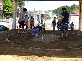 また並行して、PTA育成部の皆様が、町子ども会相撲大会の練習に向け、相撲場の整備をしてくださいました。