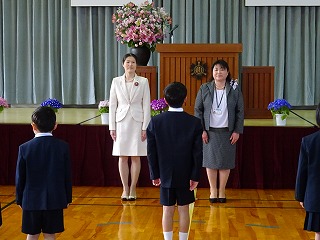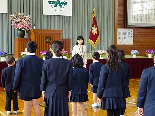 まず3名の先生方をお迎えする新任式を、そして引き続き1学期の始業式を行いました。