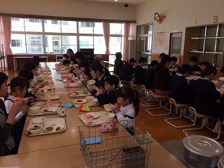 小学校で初めての給食の1年生もマナーを守って食べ、お代わりもできました。