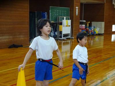 【1・2年体育】しっぽ取りをして、元気いっぱいに走りました。