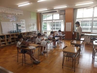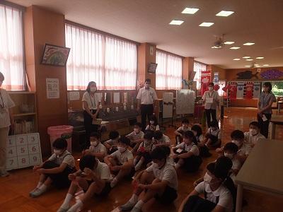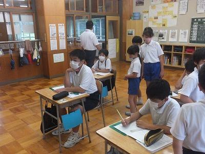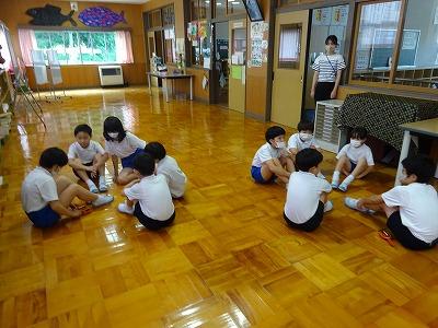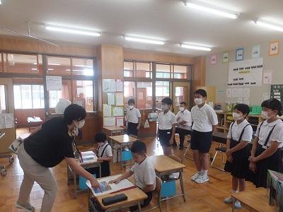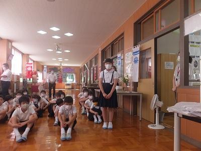 6限後半、1学期の終業式。暑さ対策・コロナ対策も考慮し、平家ルームで行いました。