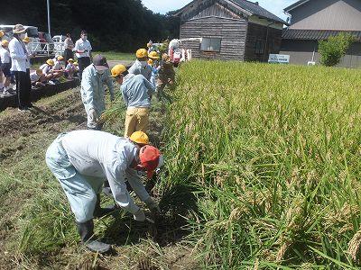 子どもたちも手ほどきをうけながら チャレンジ!! うーん、固いっ!!