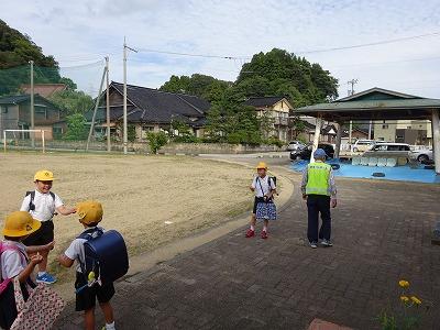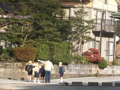 パトロール隊の方々、先生方に見守られて、集団下校。