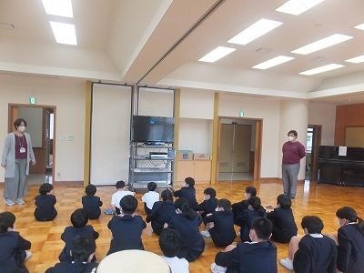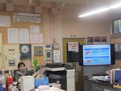 終業式では子どもたちにも その写真を大型モニターで見せました。