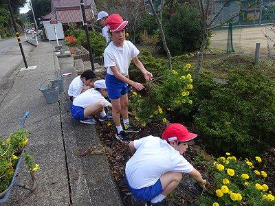 そのころ、外では、PTAの環境部のみなさんが、花壇の植え替え作業をほとんどしてくださいました。