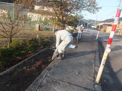 11/7の土曜日に雨が降り出したため、途中までになっていた花の苗植えを全校みんなでしました。