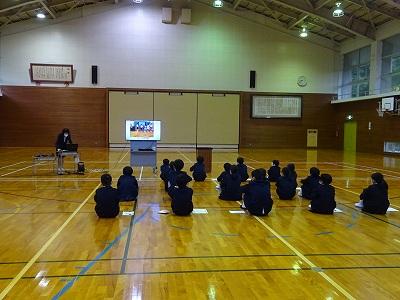 3限 地域の方々、保護者の方々が体育館に集まってくださいました。