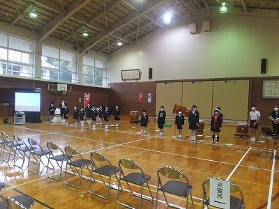 その後、子どもたちと保護者の皆様は、体育館にて、PTA子ども会お別れ会・みどりの少年団退団式をしました。