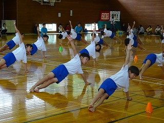 競技によってはルールを変えて行いましたが、室内のやり方にもうまく対応し、全ての演技・競技をやり遂げることができました。とりわけ6年生がいない今年度、5年生が最高学年として自覚をもって行動してくれました。