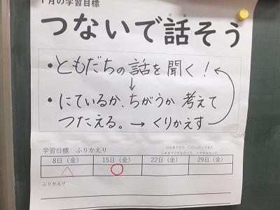 研究主任より、学習のめあて「つないで話そう」のお話。