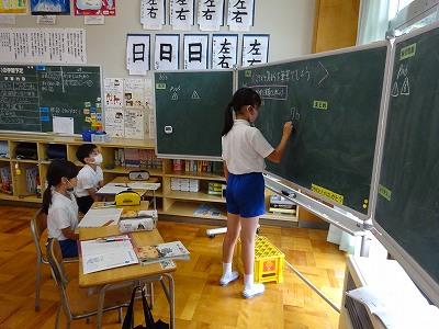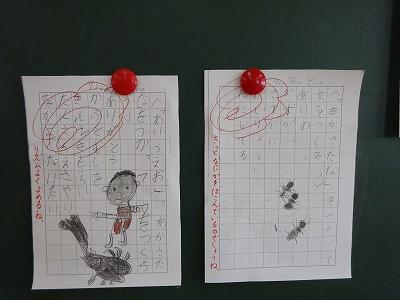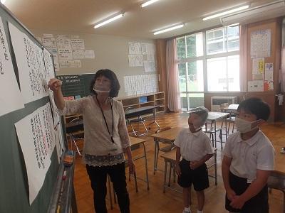 1年生が説明文の学習をしていると、5,6年生がその様子を見に来てくれました。