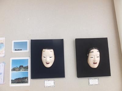 校長室では、Y先生の能面「孫次郎」とS先生の新作能面「十六」が
