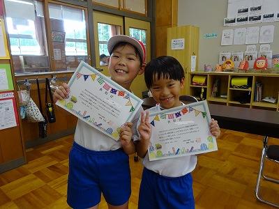 読書をがんばり、町の図書館長さんより賞状をいただきました。