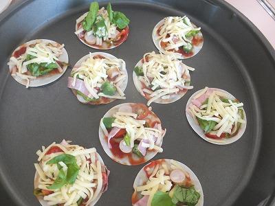 「餃子の皮で簡単ちびピザ」作りをしました。