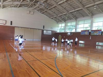 休み時間、学生サポーターの先生とともにドッチボール。体育館に元気な声が響きました。