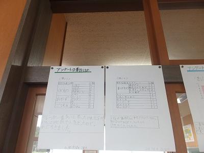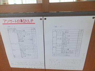 お昼、4年生より、お知らせ。「国語の学習でアンケートをまとめたので、ぜひ見てください。」
