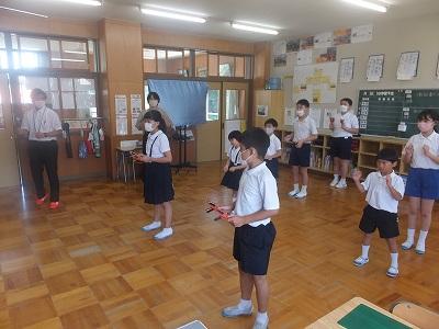 授業のはじめに、酒井様より子どもたち一人一人にお手紙と「わんわん音頭」のCDを手渡しで頂きました。以前に子どもたちが書いてお送りした「お手紙がうれしく宝物です。何度も読みました。そのお返事です。」と、頂きました。