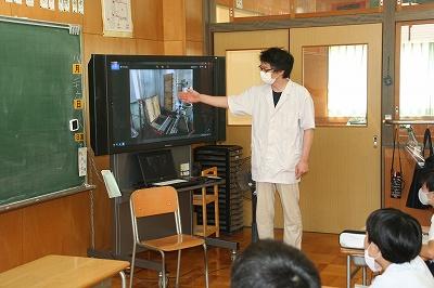 和菓子のできるまでの工程や材料の工夫など、映像を使ってたくさん教えていただきました。