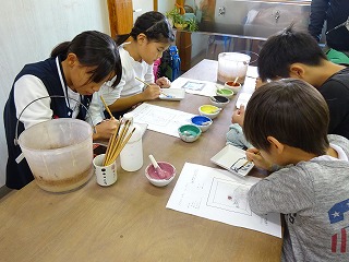 九谷焼陶芸館では、白磁の皿に絵付け体験をしてきました。昨年は金箔貼り体験をして、刈安小学校では伝統工芸にふれる体験を積んでいます。