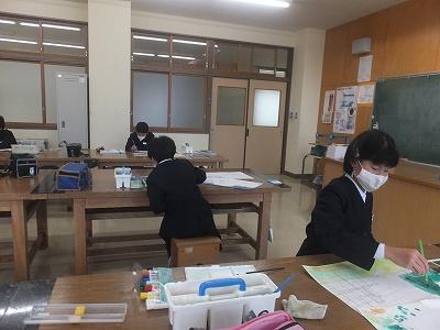 家庭室ではミシンの学習。