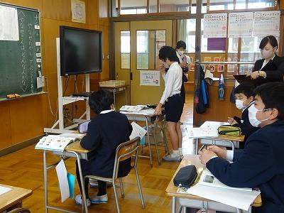 生活科。保育園のお客様をむかえる準備。司会、説明の練習へ。