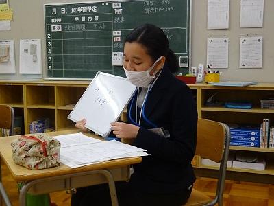 読み取りの発展学習、2年生。ベープサートの稽古をする2年生。