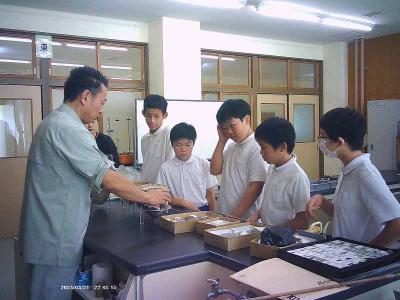 【5・6年生社会科】埋蔵文化財センターの型を講師に招き、考古学教室をしました。縄文時代や弥生時代の生活について教えていただきました。土器や銅鐸を見せて頂いたり、石器で紙を切ったりしました。さらに、勾玉作りにも挑戦しました。当時の暮らしの様子について、とても熱心に学習していました。