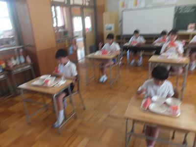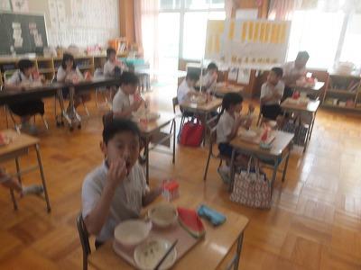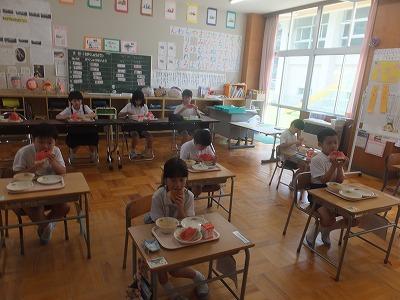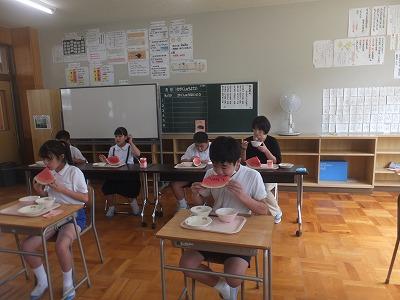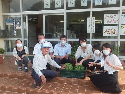 7/31 放課後、パトロール隊の隊長さんがみごとな西瓜を持ってきてくださいました。