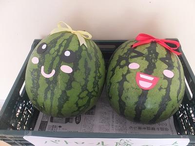 いただいた西瓜たちは、玄関にて おめかしをして子どもたちに食べられるのを楽しみに?!待っています。