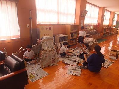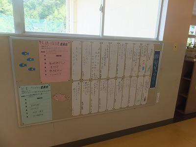 高学年の教室付近には、社会科の成果物、家庭科の成果物。