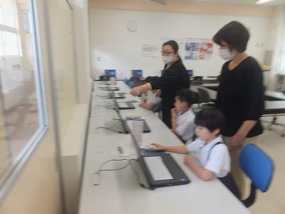 理科室では、星空の学習中の4年生。さそり座について調べています。