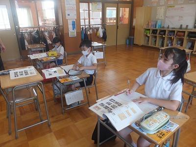8/5 今日も全員元気です。友達の考えを聞き、考える。