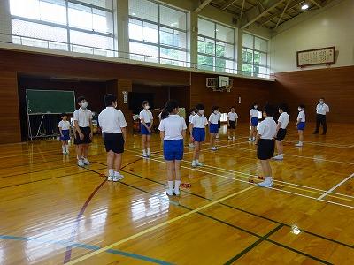 ゲームの後は、全員そろって体育館へ。そして、みんなで刈安ソーランの稽古をしました。