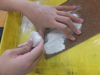 ほんの少しずつ、何日かかけて磨いていくとのことです。ピカピカつるつるになった勾玉の首かざりを首ににかける日が楽しみですね。