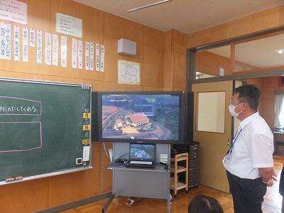 3年生 社会科。ドローンによる空からの映像を活用して学んでいます。一昨年度まで本校の教頭先生でいらっしゃったM先生が映像資料を作成し、町全体の学校が活用できるように整えてくださいました。ありがとうございます。