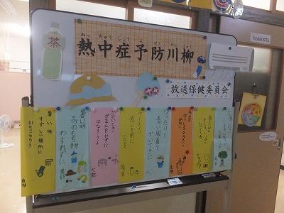 7/14 保健室前に熱中症予防の川柳掲示。委員会活動での作品です。