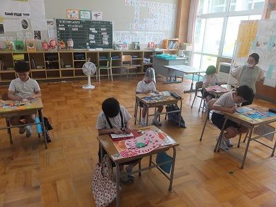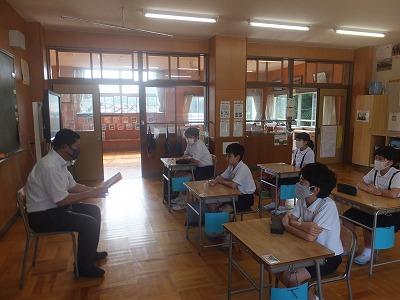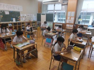 7/17 朝の読み聞かせ、本日は3,4年生は図書の先生、5,6年生は教頭先生、1,2年生は保健の先生に読んでもらいました。