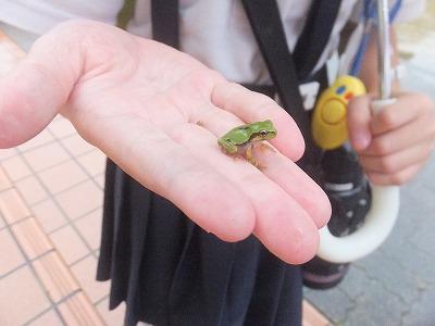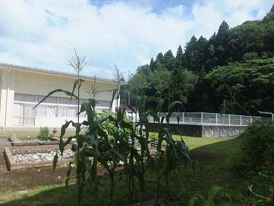 4年生が社会見学に出かけました。ちびのバッタがマコモダケの上からお見送りです。