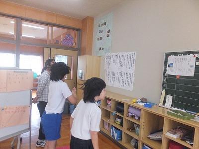 刈安では、図工室からは糸のこの音が聞こえてきました。算数の自作問題を黒板に書く姿も見られました。