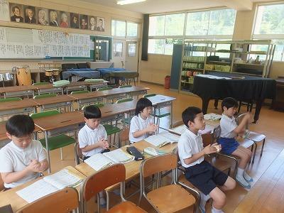 テストをもくもくと。算数のリットル・デシリットル。音楽室で合奏。どの学年もがんばっています!!